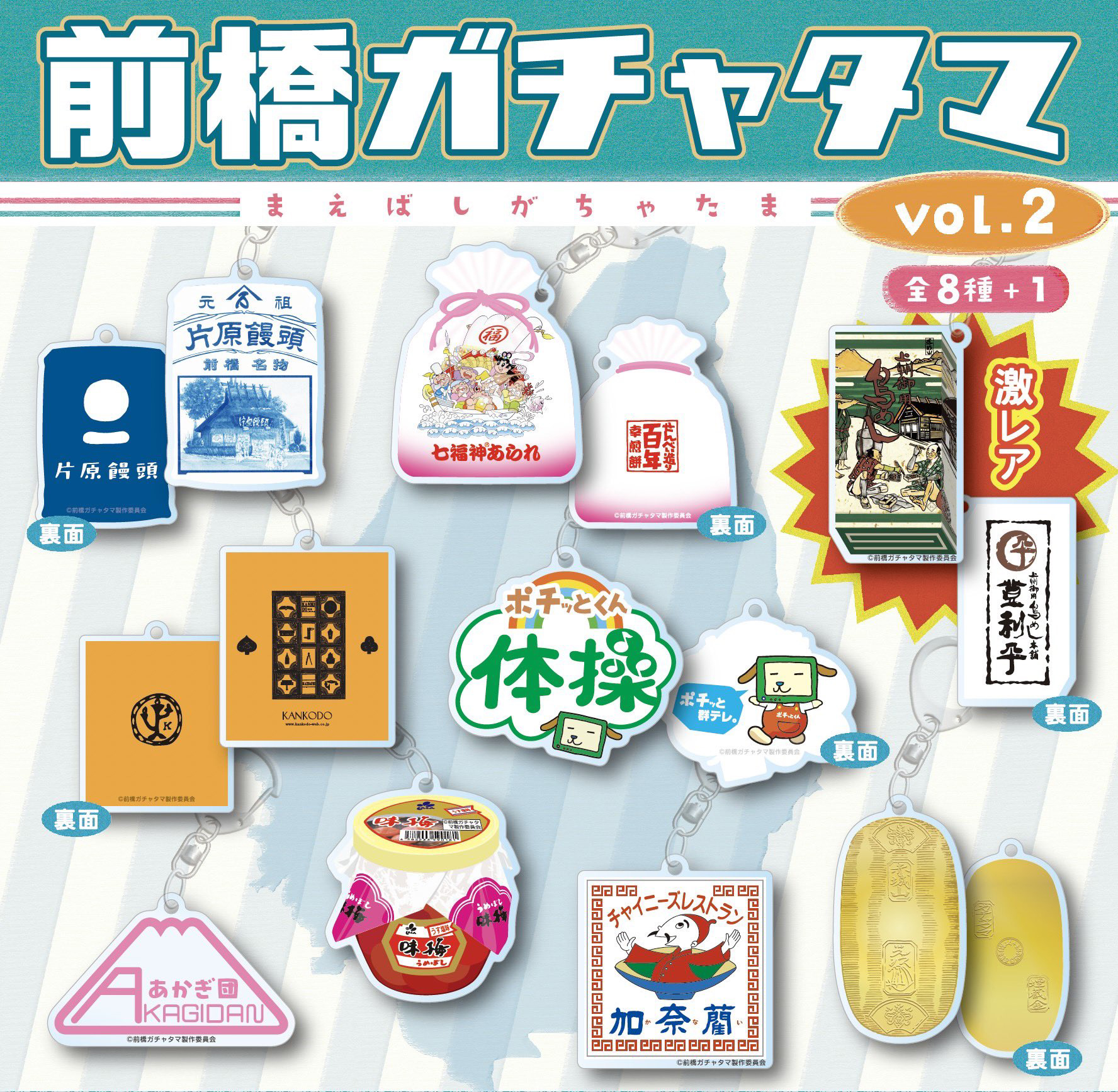 群馬県前橋市の魅力を、マニアックに追及したカプセルトイ「ガチャタマ」シリーズ。大きさ約5cmのアクリルキーホルダーで、1回300円。